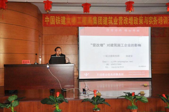 2014年5月14日,我所營改增專家組專家姚建榮應(yīng)中國鐵建某集團(tuán)公司邀請對其集團(tuán)及下屬各級財(cái)務(wù)人員進(jìn)行了建筑業(yè)營改增政策與實(shí)務(wù)培訓(xùn),本次培訓(xùn)得到了該集團(tuán)各級領(lǐng)導(dǎo)的認(rèn)為與大力支持,現(xiàn)場氣氛熱烈。