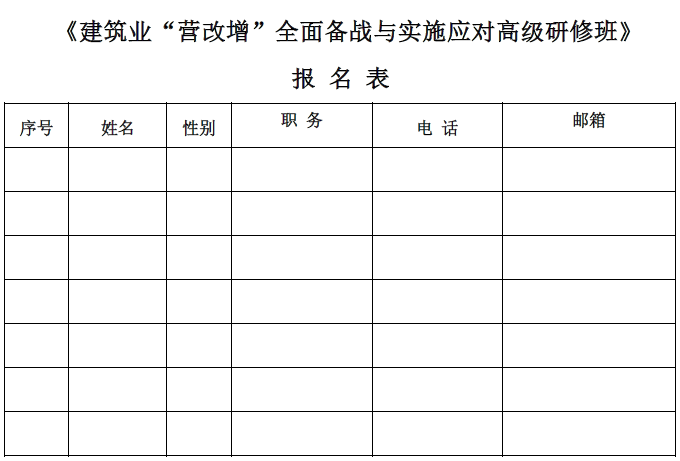 附件一:《建筑業(yè)“營改增”全面?zhèn)鋺?zhàn)與實施應對高級研修班》報名表