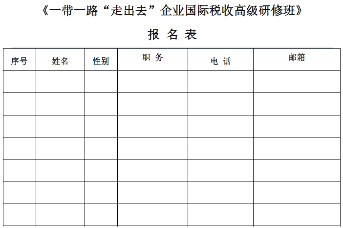 附件一:《一帶一路“走出去”企業(yè)國際稅收高級研修班》報名表