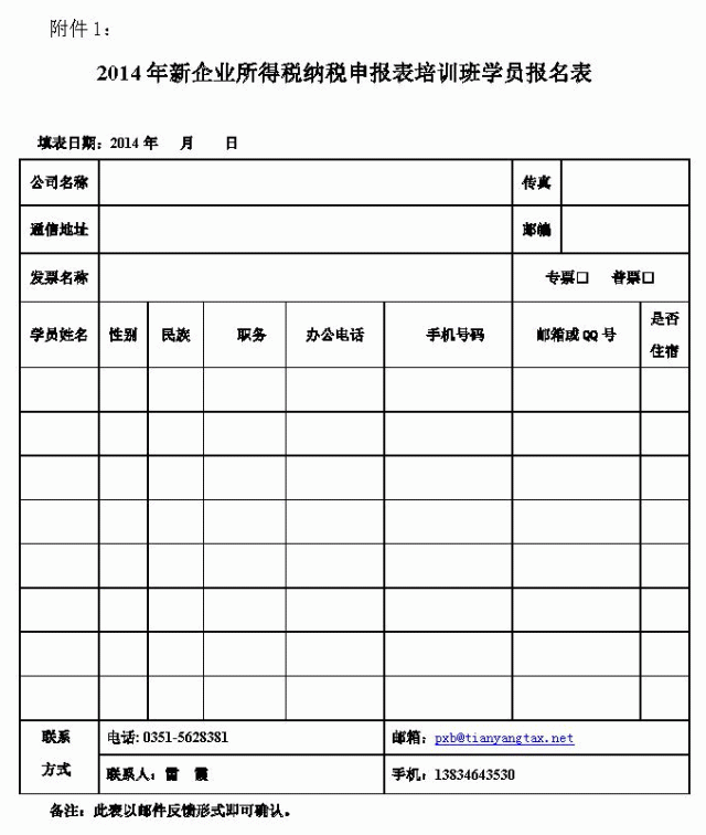 郵件報(bào)名:請(qǐng)下載附件中的報(bào)名表,填寫(xiě)完整后發(fā)送至pxb@tianyangtax.net