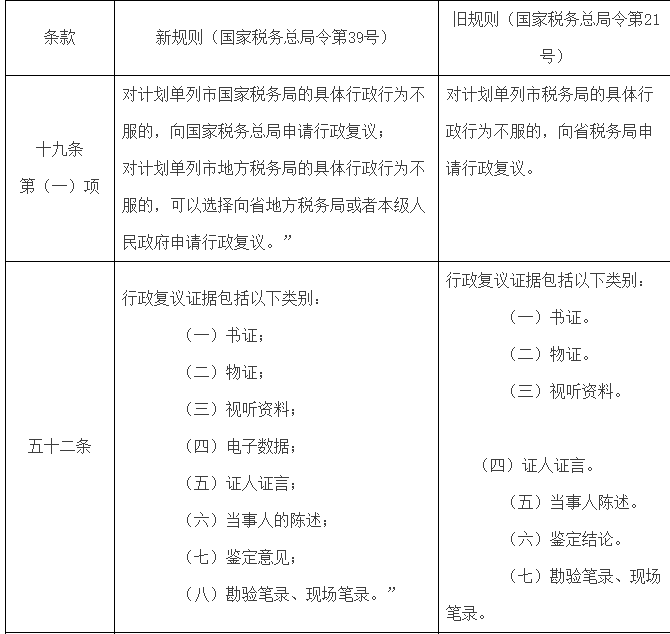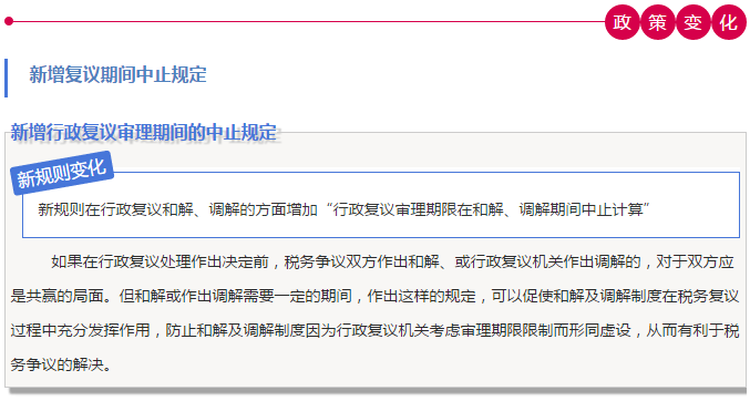 新修訂的《稅務(wù)行政復(fù)議規(guī)則》,自2016年2月1日起施行。新規(guī)則作出三處修改,包括對(duì)計(jì)劃單列市稅務(wù)機(jī)關(guān)具體行政行為的復(fù)議管轄權(quán)、行政復(fù)議證據(jù)類(lèi)型以及和解調(diào)解期間復(fù)議期限的計(jì)算。新的復(fù)議規(guī)則將對(duì)納稅人的法律救濟(jì)權(quán)利產(chǎn)生直接影響。