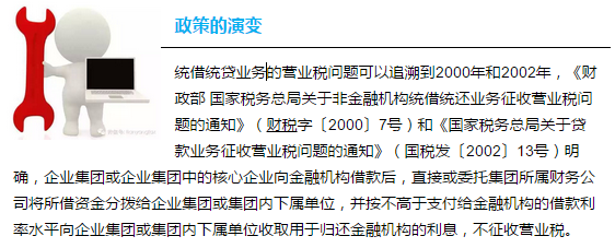 2015年12月25日國家稅務(wù)總局發(fā)布2015年第92號公告《關(guān)于明確若干營業(yè)稅問題的公告》(以下簡稱稅總92號公告),公告中將統(tǒng)借統(tǒng)貸不征營業(yè)稅的范圍擴大了,解決了目前企業(yè)資金運作中的實際問題。