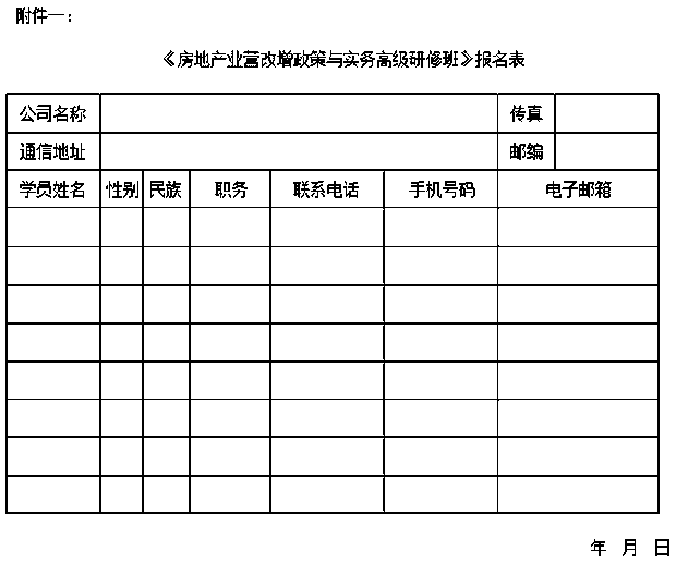 《房地產(chǎn)業(yè)營(yíng)改增政策與實(shí)務(wù)高級(jí)研修班報(bào)名表》