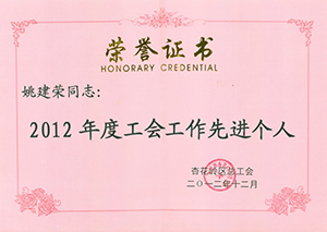 [li]2012年12月,杏花嶺區(qū)工會授予我所工會主席姚建榮同志“2012年度工會工作先進個人”榮譽稱號。[/li]